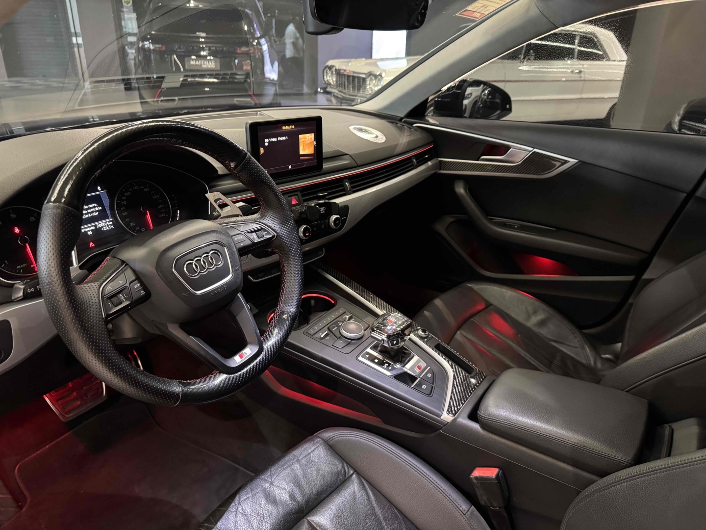 Marca – AudiModelo/Versão – A4 2.0 TFSIAno – 2017/2017Km – 114000Motor – 4cc 2.0 TFSI TurboPotência – 190 cvTorque – 32,6 kgfmCâmbio – Automático S tronic de 7 marchasTração – Dianteira (FWD)Freios ABSAirbags Frontais / Laterais / CortinaCâmera de RéControle de Estabilidade e TraçãoSistema ISOFIXAssistente de Partida em RampaChamada de Emergência AudiFaróis Full LEDMonitoramento da Pressão dos PneusSensores de Estacionamento Dianteiros e TraseirosAr-Condicionado Automático Digital Dual ZoneDireção ElétricaPiloto AutomáticoModos de Condução Audi Drive SelectFaróis com Acendimento AutomáticoRetrovisor Interno FotocrômicoPaddle ShiftStart/StopFreio de Estacionamento EletrônicoAuto HoldRodas de Liga Leve AudiRetrovisores Rebatíveis EletricamenteSistema Multimídia MMIBluetoothNavegação GPSApple CarPlay e Android AutoComputador de BordoPainel Digital (Virtual Cockpit)Bancos em CouroAjuste Elétrico dos BancosTeto SolarMaffille Motors?? www.maffillemotors.com.br?? (31) 2520-7424?? (31) 98400-3668?? Av. Raja Gabáglia, 4055 – Santa Lúcia – BH/MG